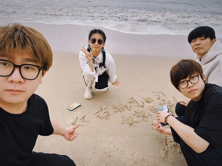 2023年我们在潮汕团建,为《古相思曲》收视祈福。(左起蔡雨潮,杨晓燕,贺羽端,齐奇)